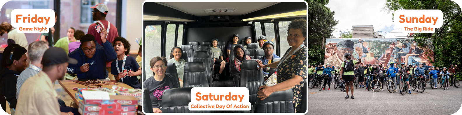 Over three days of workshops, rides, and discussions, participants explore how cycling can create positive change in their communities.